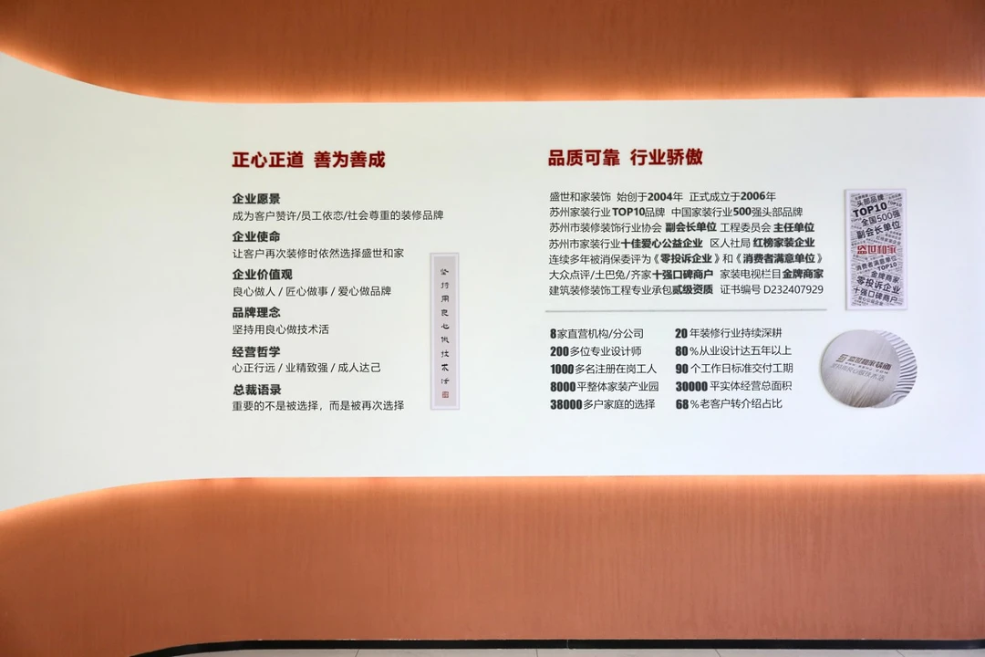 品质是盛世和家装饰的核心竞争力,品牌推行行业领先的红钻工程标准,1000多名在岗工人规范化施工,搭配建筑装修装饰工程专业承包贰级资质背书,确保工程品质与交付效率。售后保障方面,构建“无忧